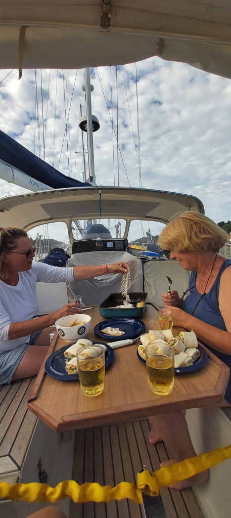 Idyllisch en mega rustig. Hier komen we weer samen met Maarten en Thea van de Nostress. Het is meteen weer vanouds gezellig. En we gaan direct allemaal leuke dingen doen. Uiteraard worden er meteen vismaaltijden besproken.