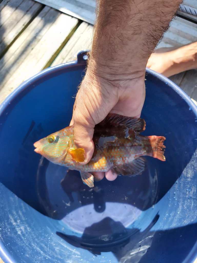 Die vangen we zelf zoals een Dorade en plukken mosselen aan de steiger. En Astrid en Thea zoeken een maaltje zeekraal bij elkaar aan de oever.