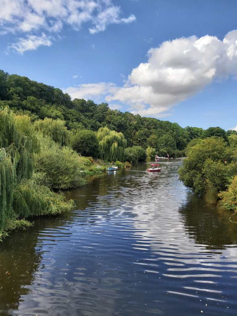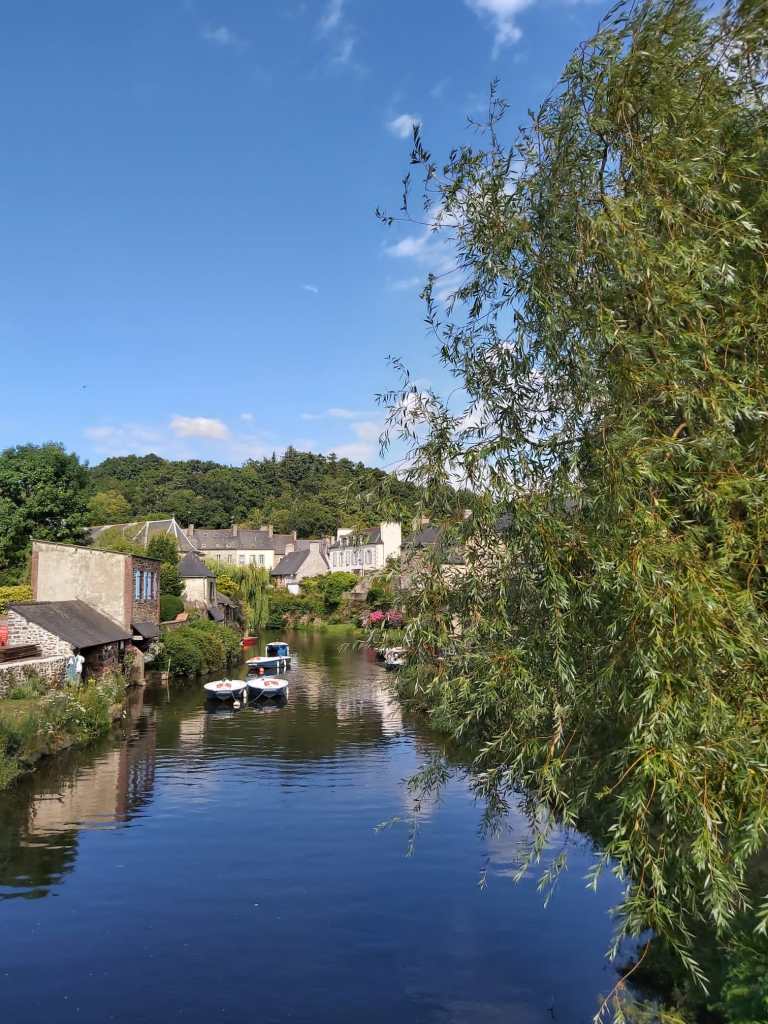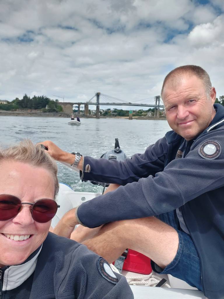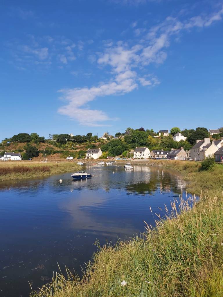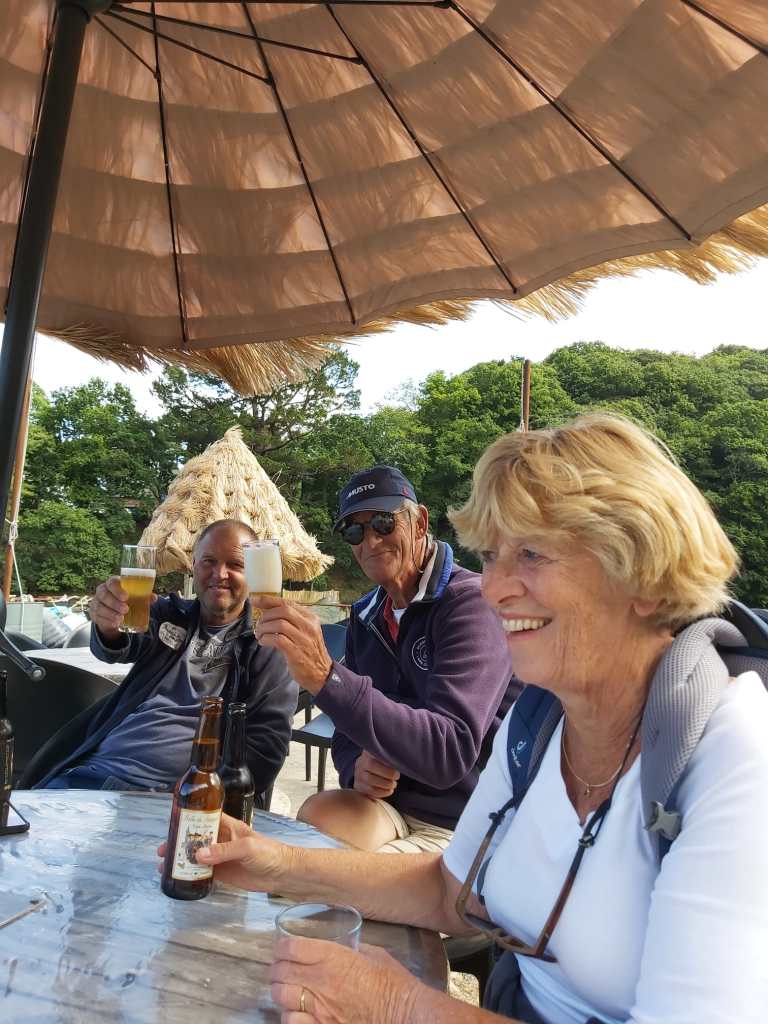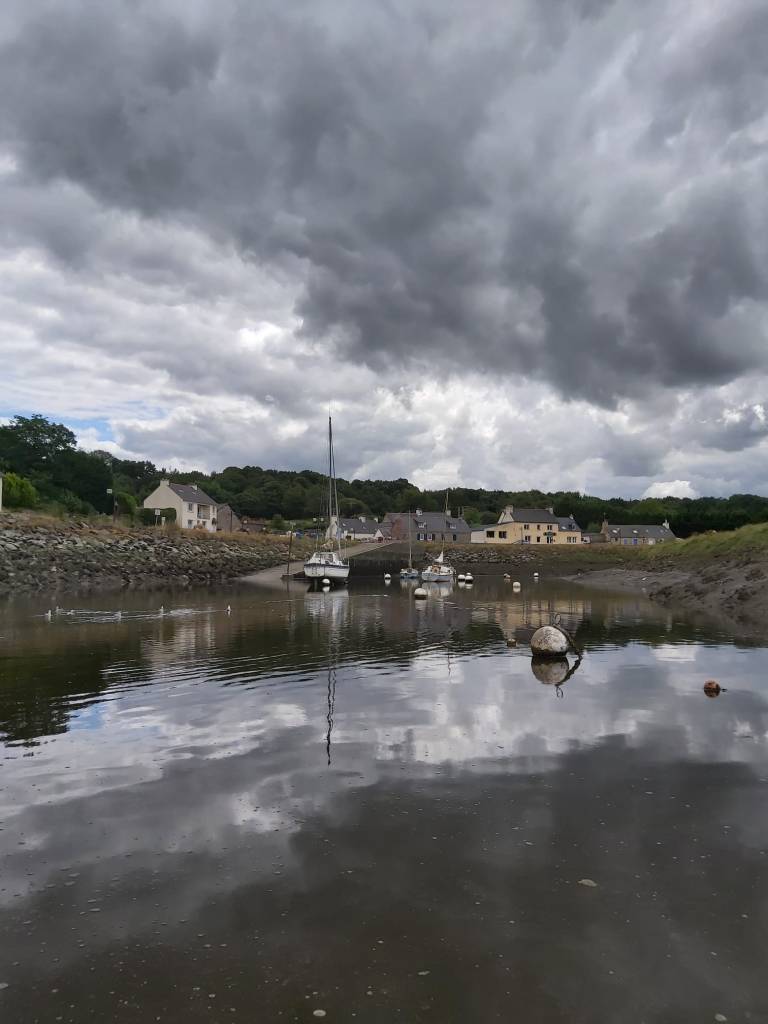 We wandelen, doen boodschappen en maken een gave tocht met de dingy’s naar Pontrieux. Verder de rivier op met 2 buitenboord motoren kunnen we elkaar altijd helpen als het nodig is. We varen 1,5 uur door tot het water bijna op is en trekken de dingy’s een trailerhelling op, zodat bij hoogwater we ook nog terug kunnen en de boten er nog liggen. Ook Pontrieux is een gaaf stadje met het laatste stukje rivier door het dorp.