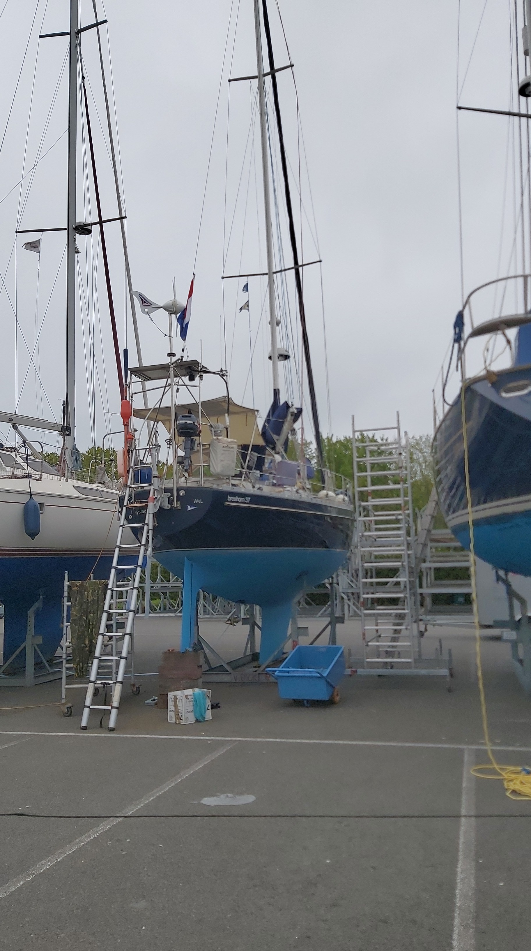 Morgen nog even een paar zaken afhandelen en dan zijn we er klaar voor. Het moeilijkste is alle familie langs en dan zeggen we gaan wat langer op vakantie. Want zo noemen we het nu. Plan van 4 maanden dus lijkt op lange vakantie toch? Morgen gaan we te dure diesel tanken en dan hebben we 275 ltr in de tank en 80 ltr aan dek staan. Dan nog even wat handtekeningen bij de dokter ophalen. Nog even een handtekening zetten onder een volmacht voor tekenen voor ons nieuwe huis. En dan pakken we de camper in een jasje en gaan we op 15 juni echt losgooien. Nog even een laatste fotootje op de bouwplaats een dan moeten we los laten. De text aan boord wordt waarheid.